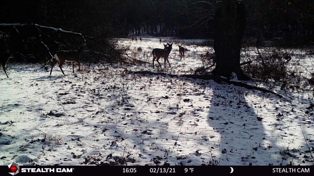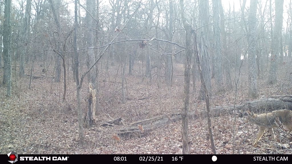 The new camera location came through big time on multiple fronts. The first picture I got was a coyote the first morning after I set the camera up. Seems like it may be high time for some predator control work on the property. After that, though, I got about two dozen shots of deer moving through on a regular basis. So it looks like I’ll probably be putting up a stand over there after all, that’s good news. On the antler shed front, while it was hard to be 100% sure as the deer was mostly concealed behind some trees, it appeared that as late as March 7th, at least one buck in the area was still sporting his bones. So another lesson was learned along the way, which was that I wasn’t finding sheds because, well, they probably hadn’t been shed yet. Some follow up research on the subject rendered more positive news, which was that deer hanging on to their racks later into the winter is generally a sign of good health.